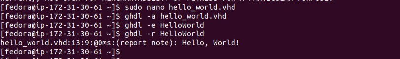 ghdl -a hello_world.vhd3. Analyze and elaborate on the VHDL design: